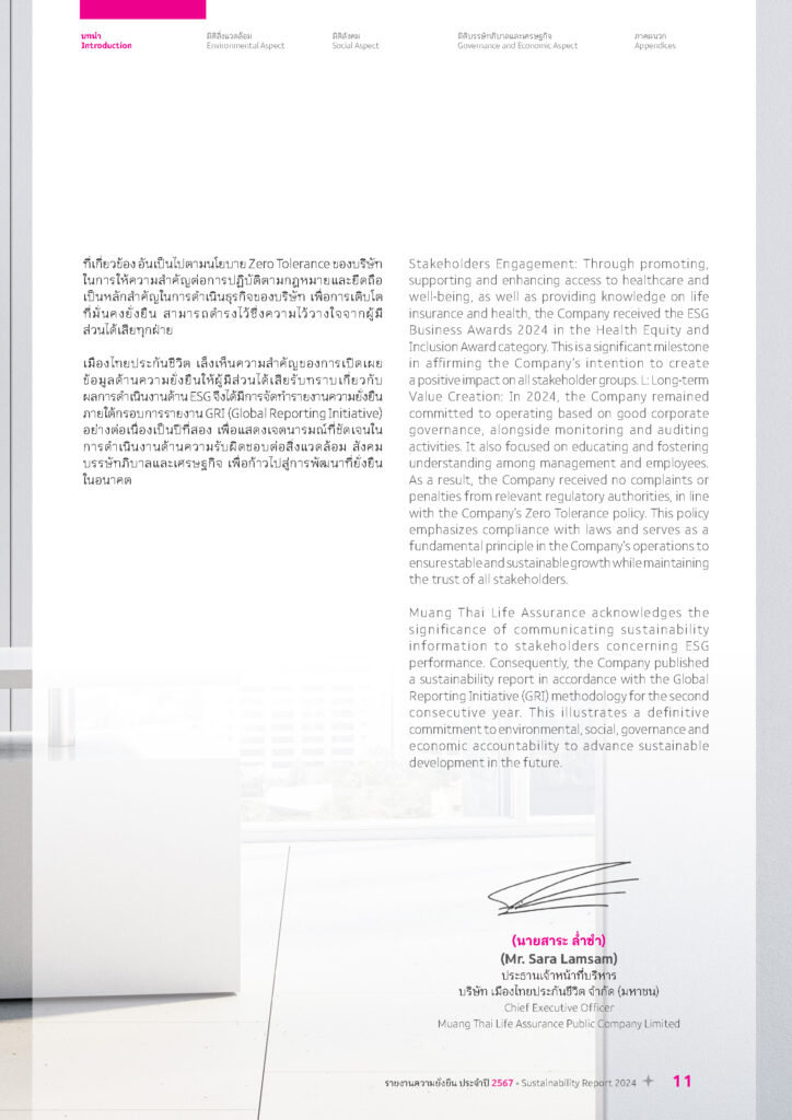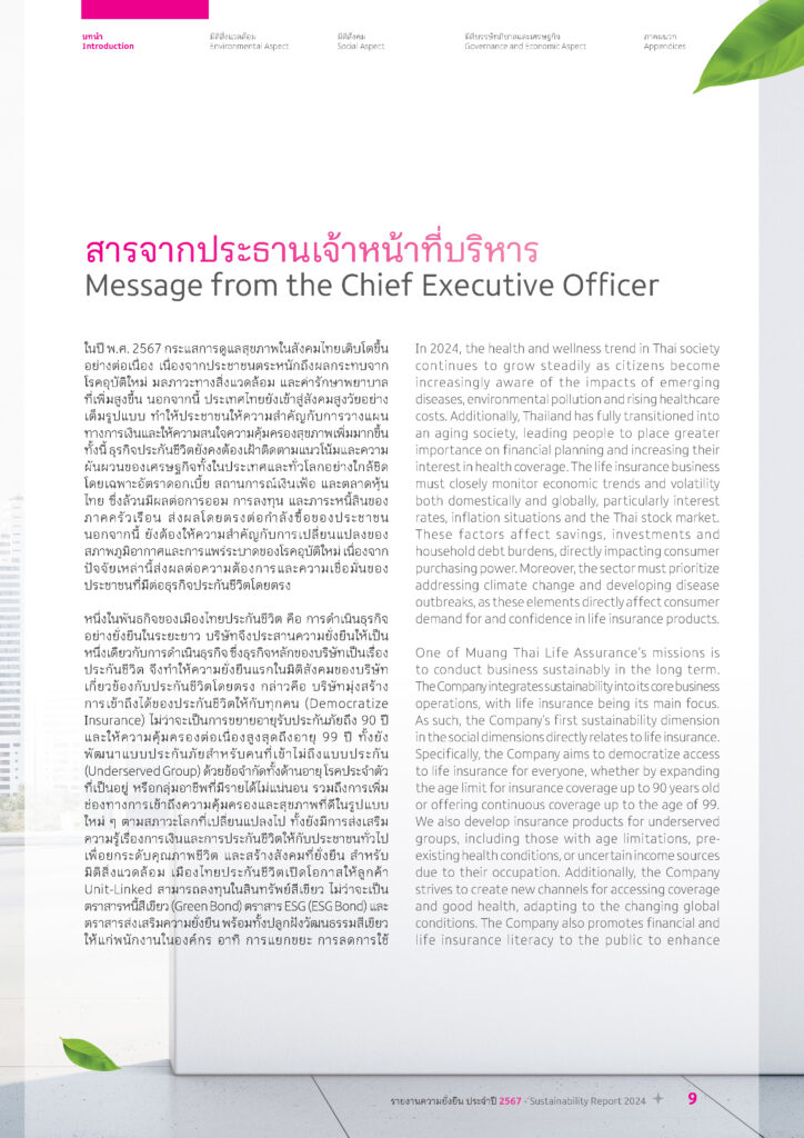รายงานความยั่งยืนประจำปี 2567 บมจ.เมืองไทยประกันชีวิต ในคอนเซ็ปต์ Happiness, Your Way เพราะความสุขคือทุกอย่าง ความสุขสไตล์คุณคือที่สุดของทุกสิ่ง