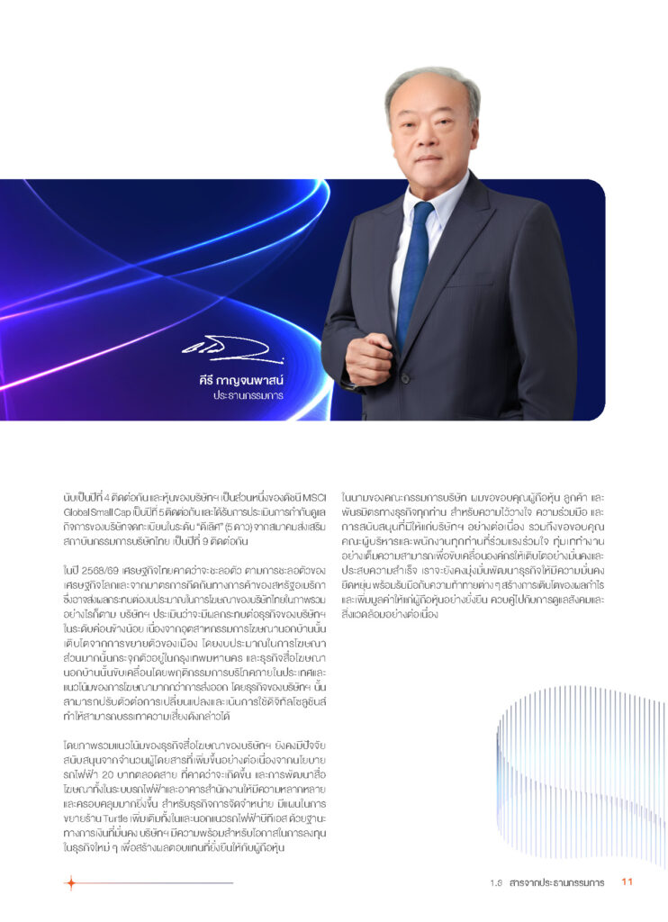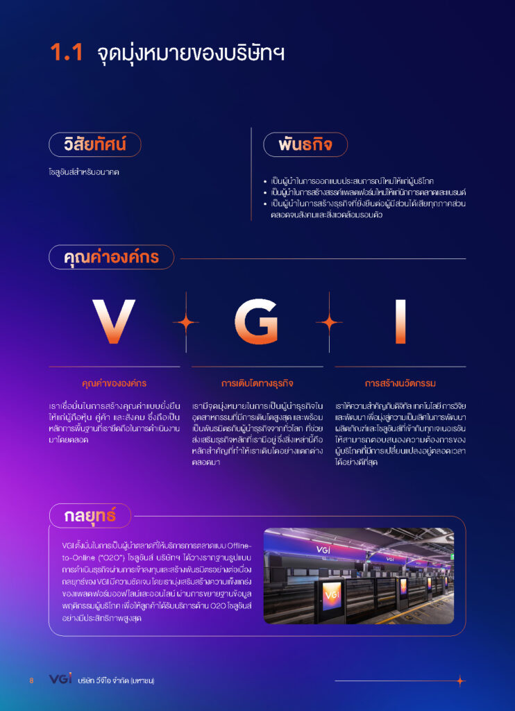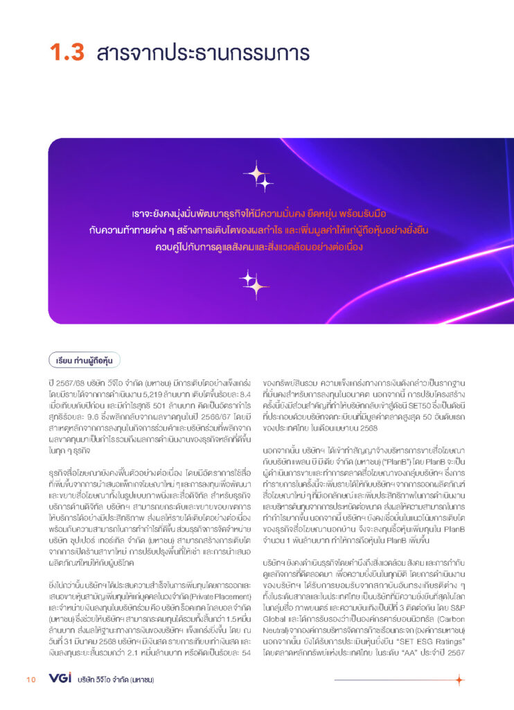 รายงานประจำปี 2567 บมจ.วีจีไอ ในคอนเซ็ปต์ THE WORLD’s MOST SUSTAINABLE MEDIA COMPANY INSPIRING MEDIA FOR SUSTAINABLE FUTURE สื่อที่สร้างสรรค์แรงบันดาลใจ เพื่ออนาคตที่ยั่งยืน