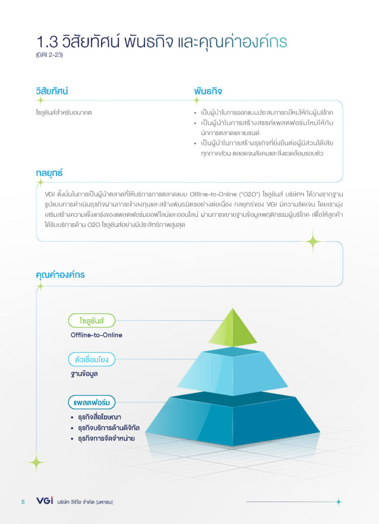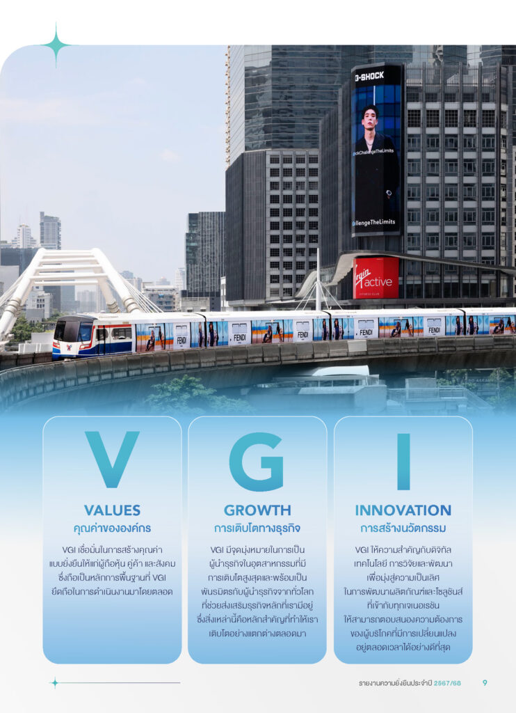 รายงานความยั่งยืนประจำปี 2567 บมจ.วีจีไอ ในคอนเซ็ปต์ THE WORLD’s MOST SUSTAINABLE MEDIA COMPANY INSPIRING MEDIA FOR SUSTAINABLE FUTURE สื่อที่สร้างสรรค์แรงบันดาลใจ เพื่ออนาคตที่ยั่งยืน